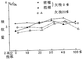 ・ 欠株が30%生じても、苗立数が収穫時4.000株前後に保てる栽植密度にすれば、収量は低下しない。