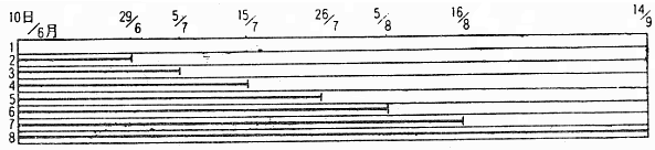現地…場内試験処理の外に①2+追8、②基4+追6A、③基4+追6B区を更に設けた。