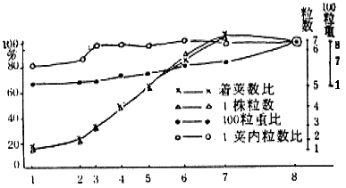 | 〃 〜 〃 | 多量(10kg以上) | 着莢数の増加と千粒重の増大 |