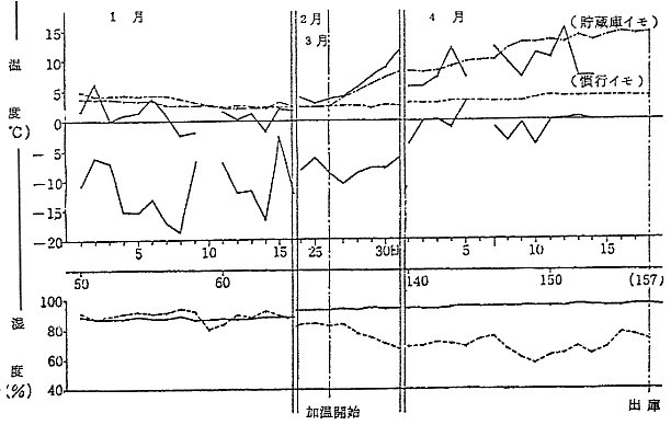 2) 貯蔵中の温度は貯蔵開始11月12日より徐々に降下させ50日経過後に2.5℃とした。