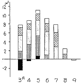 (4)傷口に塗布剤を塗布する場合、余り大きな傷でなければ1週間程度の期間をおいて塗布してもゆ合組織の形成には余り影響がなかった。しかし傷口のなおり難いものについては塗布が遅れることによる影響が強く現れるようであった。ホルモン剤の塗布効果は切枝では2、4-D、NAAで顕著であったが、圃場では2、4-Dの効果は小さかった。