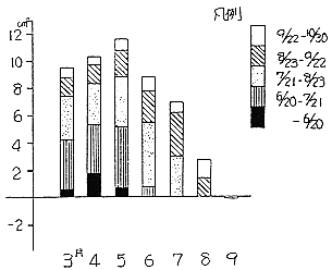 (1)圃場においては、ゆ合組織の形成は夏期間において旺盛であり、ゆ合組織の形成される期間、枯込程度などから傷口の最もなおり易いのは4月から6月にかけて傷をつけたものである。
