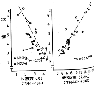 2)基肥N増による減収は生育初期の土壌塩類濃度上昇による面が大きいので、適正な土壌水分の確保を図る土壌管理もまた重要である。