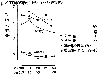 49年;N(0.20、40kg)×K2O(0.20、40kg)の組合せおよび無肥料区計10処理