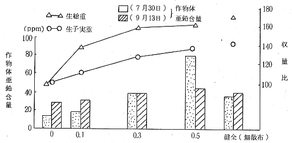 | 施用量 | 収量kg/㎡ | A-Zn(ppm) | 発生程度 |