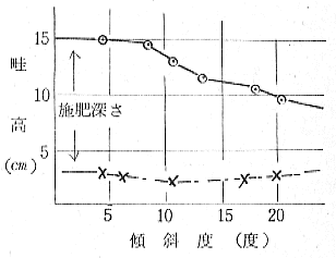 図1 傾斜度と畦高・施肥深さの関係(等高線作業)