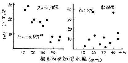 2)グスベリ状果は土壌水分環境(作土層の保水能)の劣悪化によって多発し、深耕によって、その発生率が著しく低下した。