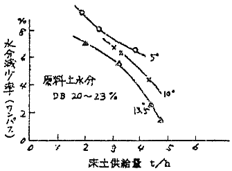 1) 床土処理量と処理温度は、ドラム傾斜角5°で3.8t/h・86℃、10°で4.3t/h・77℃、