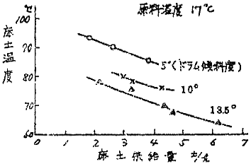4)標準的な使用法(床土利用で含水比22%)は供給量4t/hとするとドラム傾斜角10°、目標床土処理温度70℃前後では、燃料吐出圧力3㎏/㎝(26.6l/h)に調節することが望ましい。