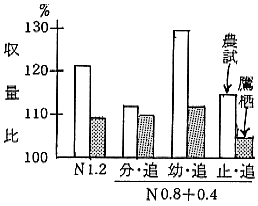 1)N追肥による増収率は成苗水稲よりも稚苗水稲の方が大きく、その追肥効果は幼形期追肥>止葉期追肥≒分けつ期追肥の順で、幼形期追肥の効果が最も高く、追肥N量としては0.2Kgよりも0.4Kgの方がまさっている。