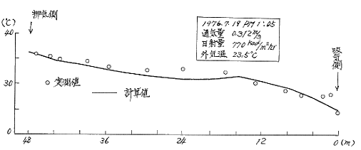 2. 供試した物理定数では,南中時前後における通気方向の温度変化と計算値が適合するようである。