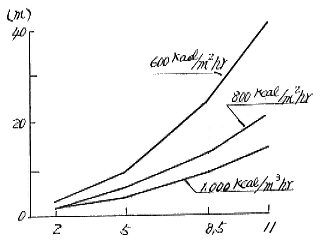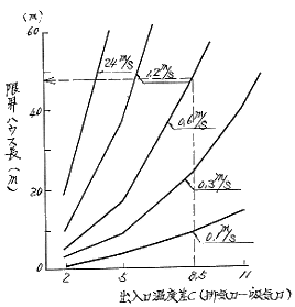 3. 第2図に排気面の限界到達温度を35℃とした場合の,吸気温度と排気温度の差(第2図,横軸)と限界温度到達距離(以下,限界ハウス長という)の