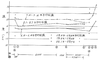 図1 送水過程における水温の変化(南月形地区 52年調査)