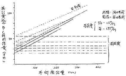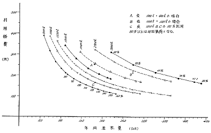 図1 B.C容量 別利用率別生乳100kg当り利用経費の比較