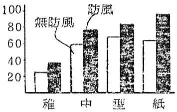 ・試験は防風網の高さの3〜5倍の地点、すなわち防風効果の最もあらわれやすい地点で調査された。
