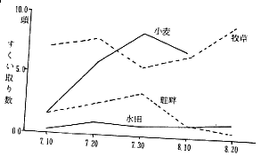 (2)従って小麦畑、イネ科牧草地でのカメムシの発生動向を把握し、水田でのカメムシの防除対策資する。