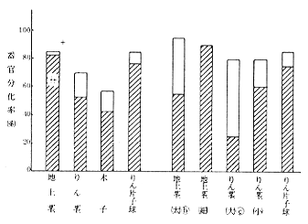(5)培養材料の種類で器官の分化、発達に大きな差があった。供試する材料としては地上茎またはりん片子球が適当と思われる。また、地上茎の太、細で差が認められ、太い地上茎では分化後の発達程度が劣り、材料としては細いものが適当であると判断される。