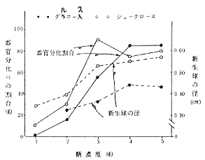 (2)NAAは0.1〜0.3mg/L、シュークロースは3〜5%で良好な結果を期待できる。またグルコースを利用する場合は4%以上必要である。