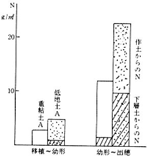 ⅱ)これに加えて、作土、下層土とも腐植が少なく、かつ下層が硬くて根の伸長が抑制され、幼形期以降の地力N吸収が少なく、後半の生育が抑制される。