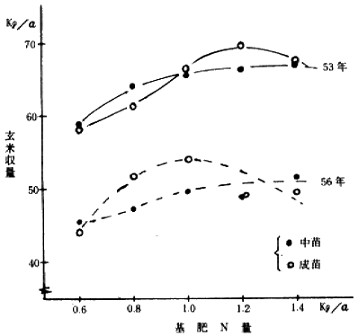 5.以上の結果から、中苗水稲においては稚苗水稲に対してとられたような基肥N増施は危険性が大であり、成苗水稲と同様に基準施肥量で十分である。