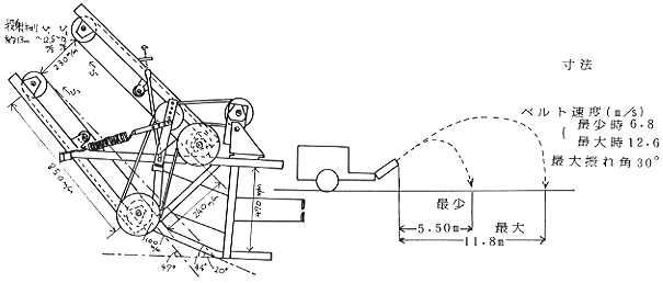(2)ベールスローワの構造と性能は図2のように最大ベルト速度は12.6m/sである。
