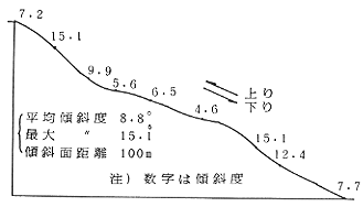 | 傾斜 | 上り速度 | 下り速度 | 上り(%) | 下り(%) | 平均(%) | |||