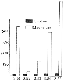 (1)A.solani−初発期は6月上旬で、ジャガイモの萌芽と同時に飛来産仔すると考えられる。最盛期は原因不明であるが7月中下旬の地域と8月中下旬の地域があった。十勝にくらべ斜網の発生期は遅い。