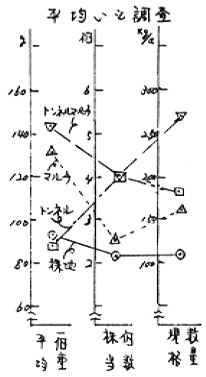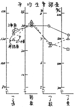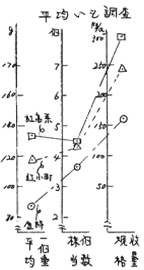 4)植付節数 地上部の成育は3節が僅か良く、一株当いも個数も0.4個、上まつたが、平均一個重で1.2節より軽く総体的には明瞭な差は見られなかった。