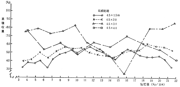 ②施肥量については,9〜15Kg程度の施肥範囲でやや収量が高く,それ以上の施肥量では増加はみられなかった。