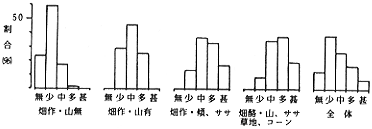 平担地の多い一般畑作地帯に少く、てん菜が山あいに作付けされたり、附近に越冬地となるササ地