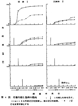移行しやすい(第4図)。発病は4月から6月にかけて最も多くみられるが、盛夏期には著しく抑制された。