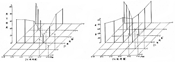 (3)土壌水分の影響 54年・55年 後期土壌水分:標準、変動