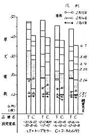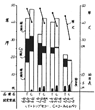 | S56年 | 播種 10月2日〜収穫3月15日 | 〃 ・コーネル619 | 4段変温夜間最低H.10〜13℃L8〜11℃ | 〃 |
