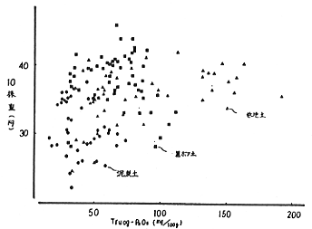 2 またN肥沃度に対応した適正なN施肥量はN5Kg/10aの追肥を前提とし、熱水抽出性−N5mg以下では基肥N20〜25Kg、5〜10mgでは15〜20Kg、10mg以上では10〜15Kg/10aが適量であった。