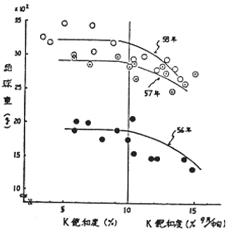 2)K肥沃度水準別適正K2O施肥量策定試験(昭和56〜58年、中央農試圃場):K肥沃度
