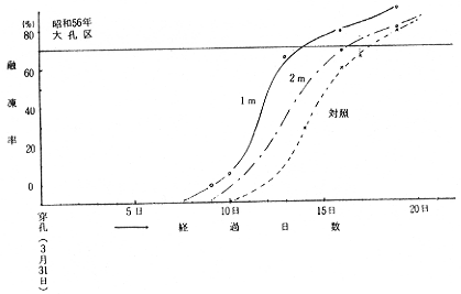 表−1 各種工法における融凍促進効果め比較(融凍率80%に達した月日)