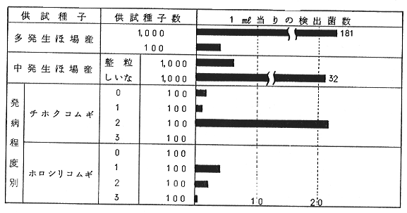 発ほ場並に増加したことから、汚染種子による病原菌の分散が発生地域の拡大に重大な役割を果すことが