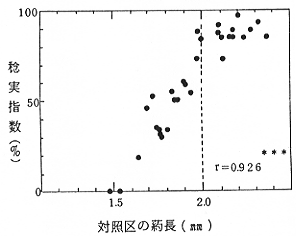 ④ 耐冷性変動の機構(Fig4):前歴水温による耐冷性の変動は水温処理による葯長の変動と対応しており、葯長2㎜以下では葯が短くなるほど耐冷性が低下した。