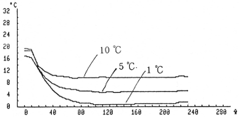 ①風湿は1℃が最適で、初温23℃のホウレンソウが50分で5℃、1時間30分で1℃になった。