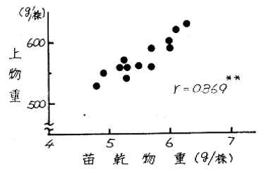 ①苗は育苗日数35日、苗乾物重6g/株(生草重35g)以上を目標とし、苗床は基肥を10a当たりP2O530kg、K2O6〜10kgを施用し、仮植後10日目にNのみ5kg(硝安)施肥が最も望ましい。