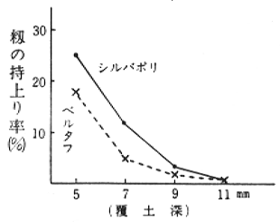 (2)覆土深が7mm(籾上端より覆土表面まで)の場合籾の持上り率は著るしく高かった(表−2)。