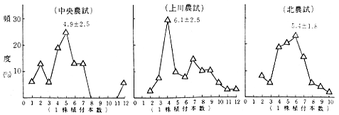 図−2 田植機械による植付本数の頻度分布(昭和60年)