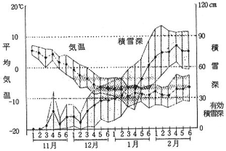 冬期間の気象経過、とくに積雪深と気温の経過の特徴を把握し、有効積雪深(30cm以上)の得られない地帯や少積雪深(30cm未満)状態で極低温(平均気温-10℃、最低気温-15℃)の続く地帯での埋土は凍害を受けないよう覆土を十分にする。