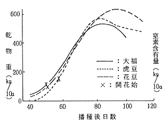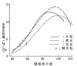 したがって,高級菜豆においてはこの開花始以降の窒素供給が,個体の維持増大,子実生産の上で重要と思われた。