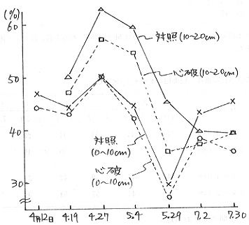 | 地点 | 処理 | 融雪日 | 表土(0〜10cm)の含水比(%) | 暗渠機能*1 | ||||