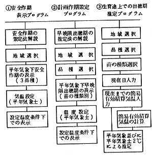 6)以上の計画作期および出穂予測に関する情報モデル(プログラムサイズN88、−日本語BASICのソースで1200行,NEC-9801で作動)を開発した。