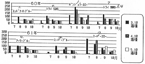 | 播種期(月・日) | 3.88 | 4.10 | 5.13 | 4.10 | 4.10 | 3.11 | 4.10 | 5.10 | 4.10 | 4.10 |