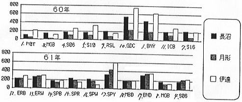 | 場所 | 中央農試 | 月形町 | 伊達市 | 中央農試 | 月形町 | 伊達市 | ||||
