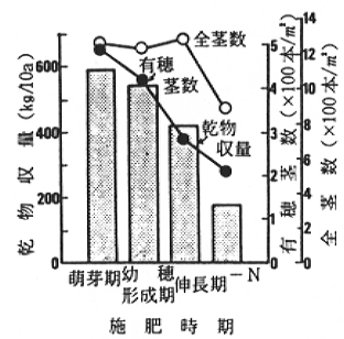 図2 早春の施肥時期が1番草収量、全茎数、有穂茎数に及ぼす影響