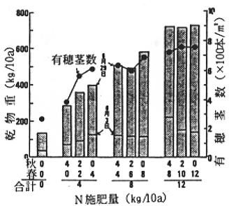 図8 窒素の施肥配分が年間乾物収量に及ぼす影響